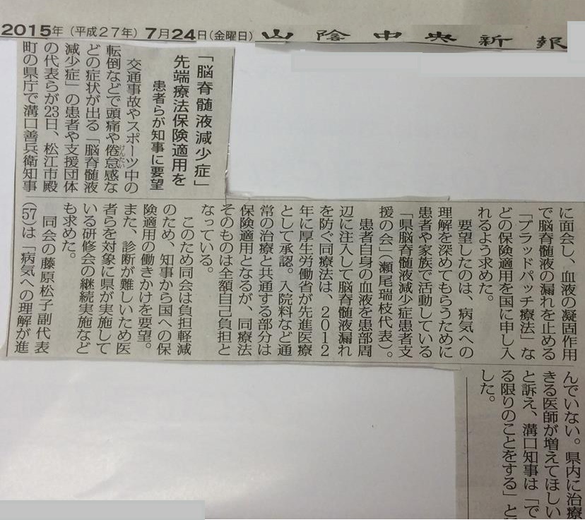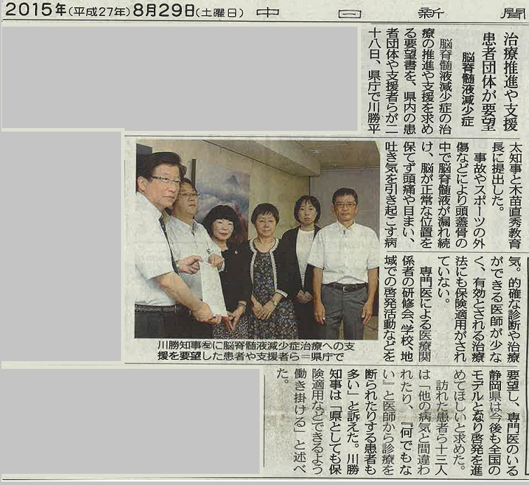 島根県溝口善兵衛県知事への要望 脳脊髄液減少症患者・家族支援協会